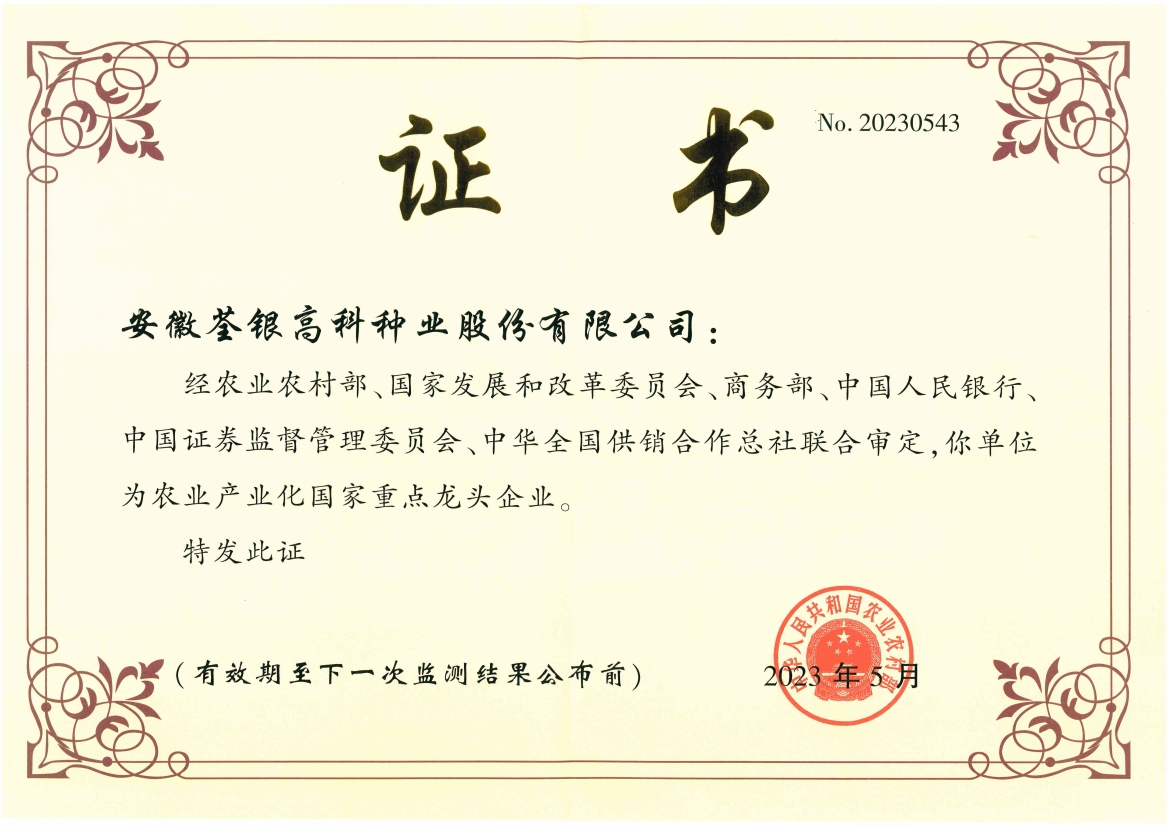 2025年07月安徽荃銀高科種業(yè)股份有限公司是一家“以種業(yè)為核心、農(nóng)業(yè)服務(wù)為延伸、探索和創(chuàng)新農(nóng)業(yè)多元化發(fā)展”的現(xiàn)代高科技種業(yè)上市公司,證券代碼:300087。公司注冊(cè)資金9.47億元,系“中國種業(yè)領(lǐng)軍企業(yè)、農(nóng)業(yè)產(chǎn)業(yè)化國家重點(diǎn)龍頭企業(yè)、國家高新技術(shù)企業(yè)、農(nóng)業(yè)部首批農(nóng)作物種子育繁推一體化企業(yè)、中國種業(yè)信用明星企業(yè)"。在國內(nèi)控股子公司20多家,在國外設(shè)立分支機(jī)構(gòu)4家,良種銷售至全國20多個(gè)省(市、區(qū)),出口覆蓋20多個(gè)國家與地區(qū),種業(yè)綜合實(shí)力、雜交水稻研發(fā)、推廣及海外業(yè)務(wù)規(guī)模均居全國種子企業(yè)前2位。