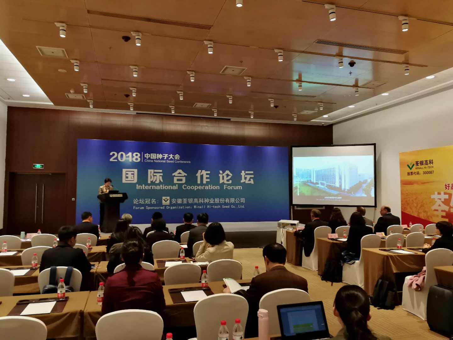 ? ?公司張琴董事長作為中國種子協會副會長、國際合作分會會長主持國際合作論壇并發言,就荃銀高科發展現狀和未來發展思路進行了匯報。來自農業農村部國際合作司的有關領導以及美國、印度尼西亞等國的育種家、種業企業,就農業走出去政策、育種技術、檢驗檢疫、知識產權保護等相關問題作了交流分享。