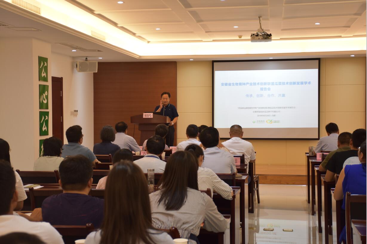 ??? 24日下午,安徽省生物育種產業技術創新戰略聯盟瓜菜技術創新發展學術報告會召開,合肥市科技局農村與社會發展科技處處長方建東,安徽省蔬菜產業技術體系首席專家、國家西甜瓜產業技術體系合肥綜合試驗站站長張其安研究員,豐樂種業、徽大農業等安徽省生物育種產業技術創新戰略聯盟成員及員工70余人參加了報告會。